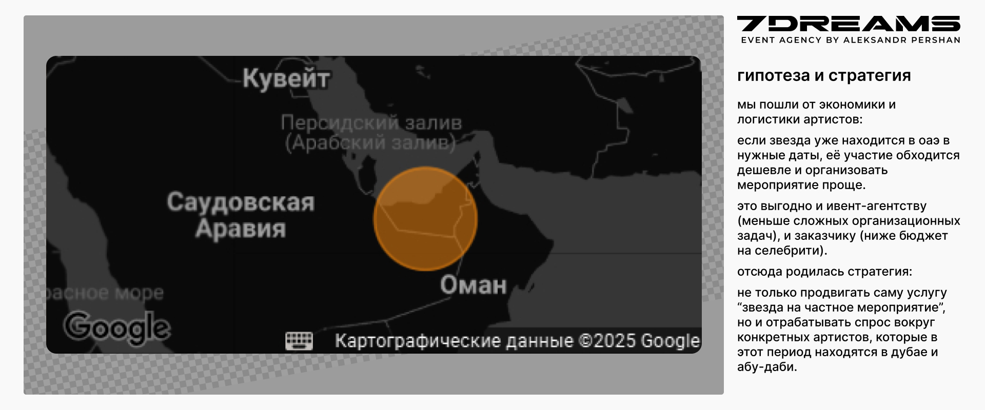 This led to the strategy: not only to promote the "star for a private event" service itself, but also to generate demand for specific artists who are in Dubai and Abu Dhabi during this period.