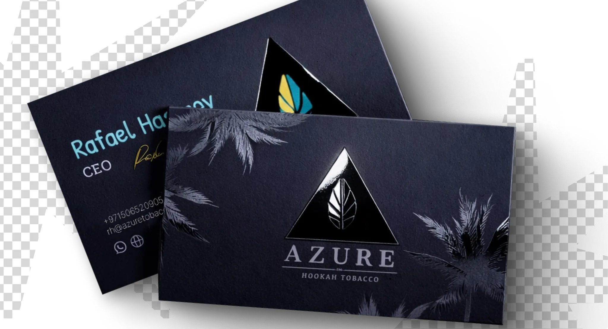 The cards were executed in a deep brand palette with selective spot varnish applied to the signature symbol and logo. The contrast between the matte surface and glossy logo enhances the premium feel and tactile perception while maintaining strict typography and visual consistency.