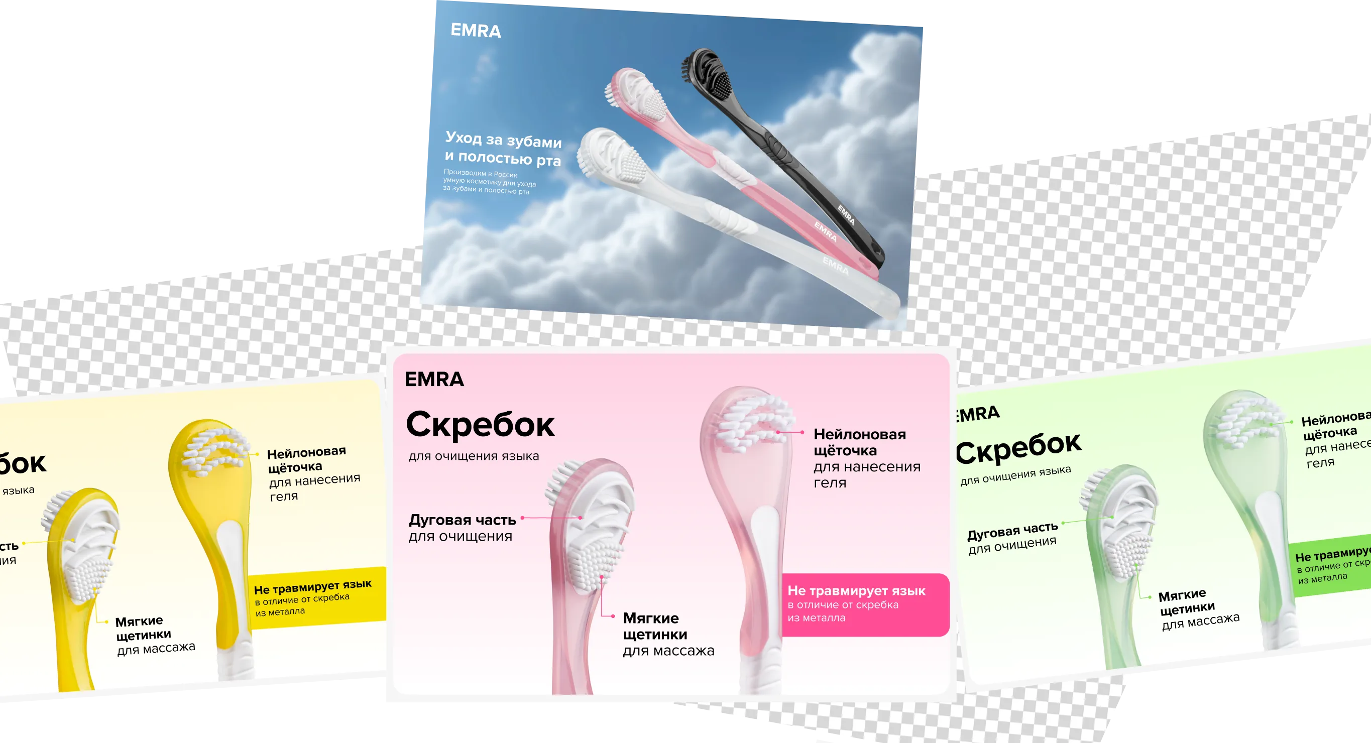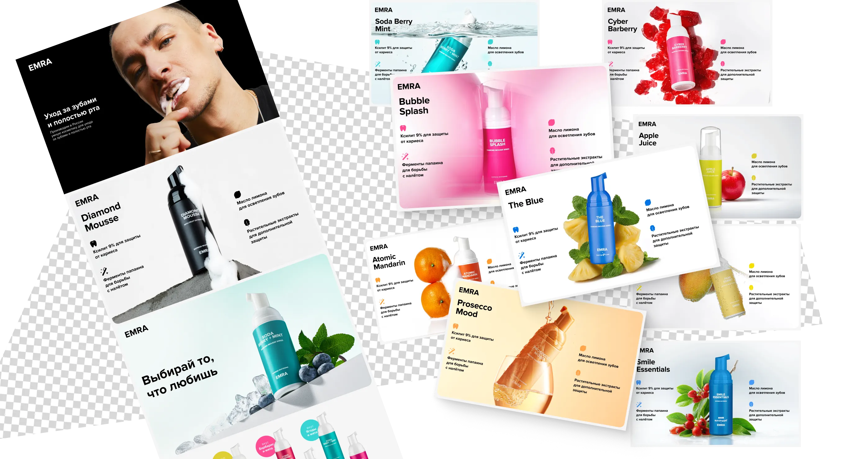 Our task is to capture attention and highlight the advantages of the product and the brand. For EMRA, we created rich content that not only informs the customer about the products but also conveys the brand’s aesthetic.