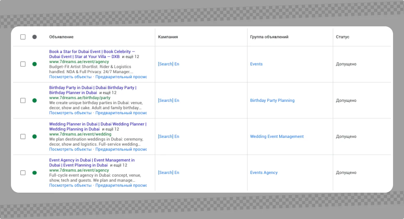 продвинуть услугу «заказать звезду на частное мероприятие в Дубае» через контекстную рекламу.